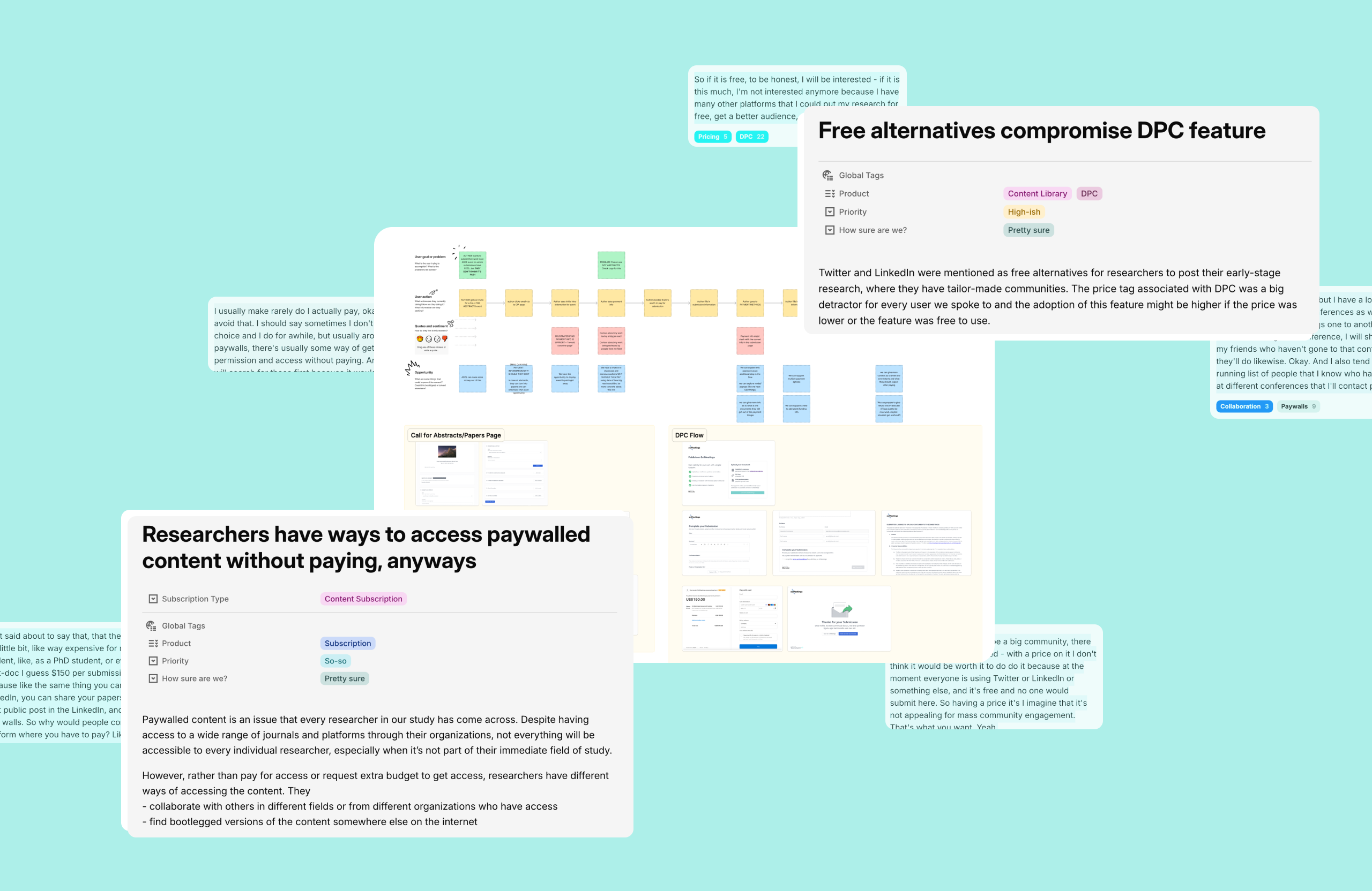 I mapped the experience, analyzed market trends, collected insights of past Morressier monetization approaches, and analyzed author’s opinions on their view of paying to promote. The findings were pessimistic: for example, an past attempt to monetize a Morressier library, where authors would pay to host their works, saw only a single $150 payment in the span of 2 months, from an audience of 500-1,000 monthly visitors.